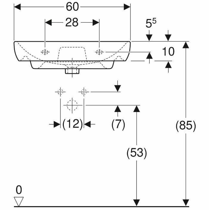 Geberit Smyle wastafel met kraangat met overloop 60x48x16.5cm wit