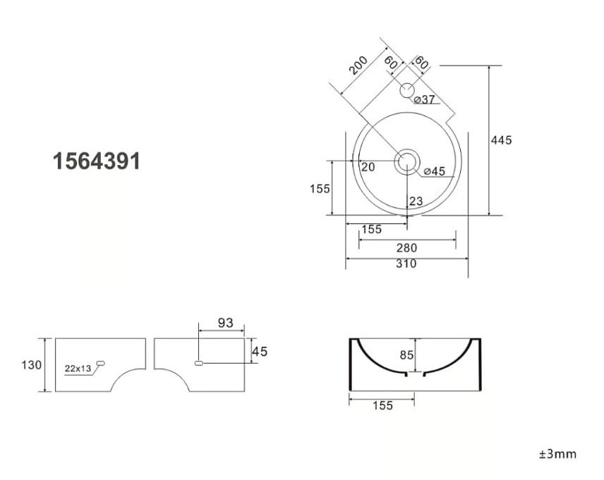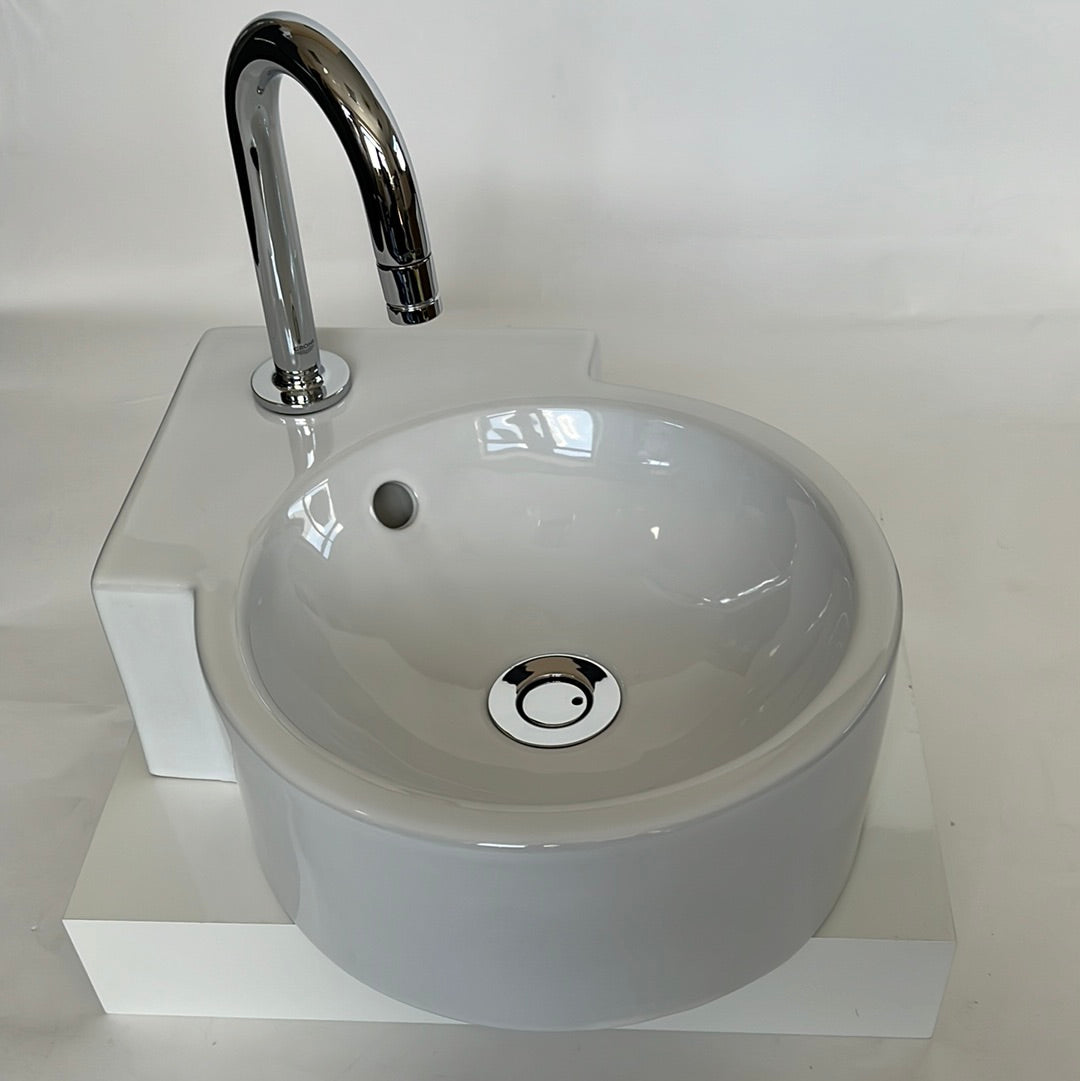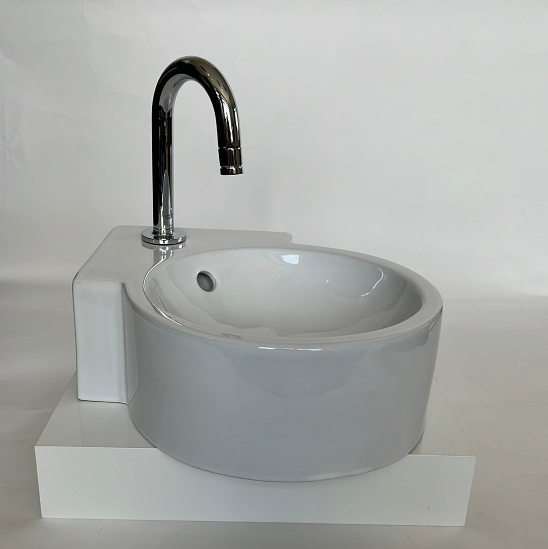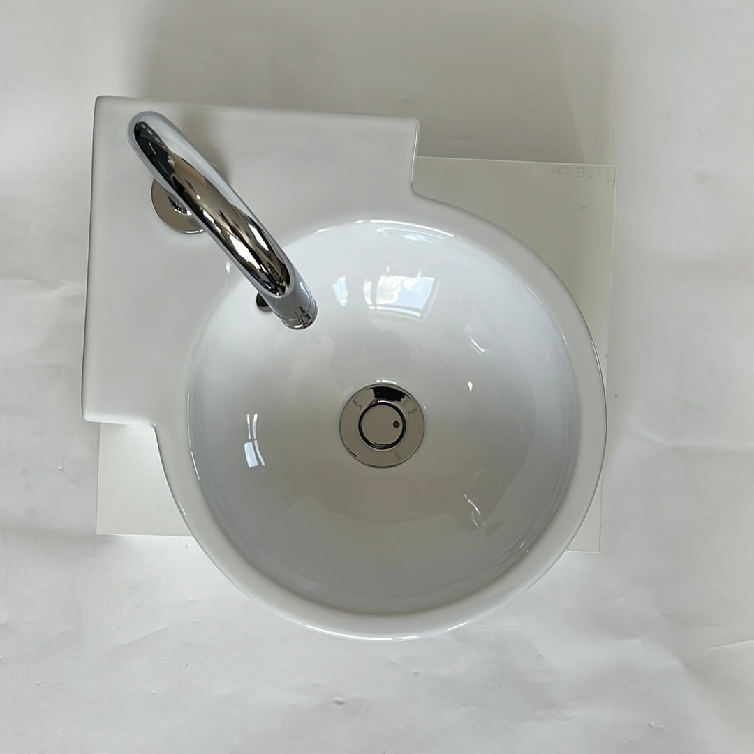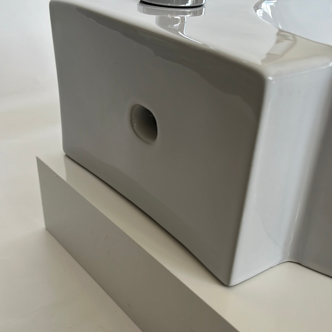 - Afmetingen: De Sub 070 Hoekfontein meet 44,5 x 31 x 13 cm, waardoor hij ideaal is voor kleine ruimtes zonder in te boeten aan bruikbare wastafelruimte.